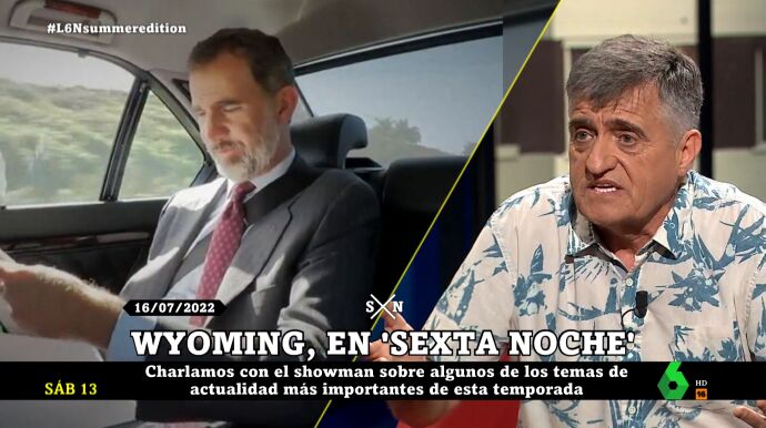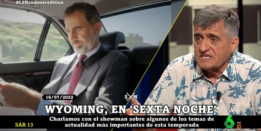 "Yo he coincidido con él en alguna ocasión", comentó Wyoming, que señaló que el monarca "es altísimo" y "en la distancia corta es un hombre de una amabilidad extraordinaria". Sin embargo, para el showman, Felipe VI "está al frente de una institución que, francamente, ni me va ni me viene". Wyoming también consideraba que el rey "tiene un papel complicadísimo" debido a la 'herencia' que ha recibido de sus predecesores, plagada de escándalos: "Antes no pasaba nada, pero ahora estas cosas salen en la prensa y capullos como yo las cuentan en la tele", sentenciaba en el vídeo sobre estas líneas.