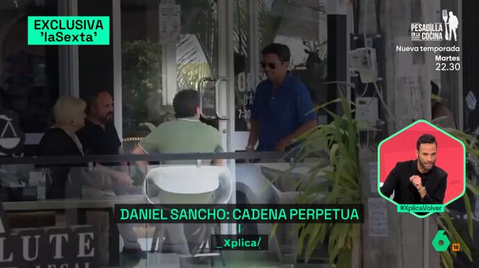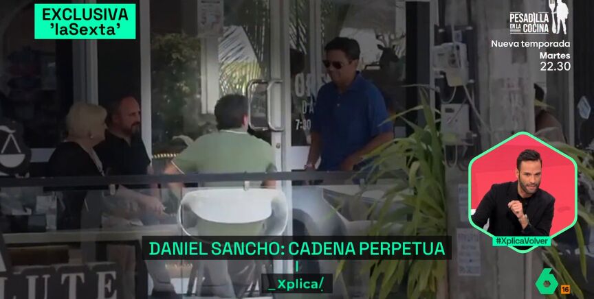 En las mismas, se puede apreciar al padre de Daniel Sancho, el actor Rodolfo Sancho, junto con su equipo legal hablando con una persona fuera de su entorno. Esa persona se trata de Iván Velasco, que pertenece a una organización internacional evangelista y que entre sus funciones se encuentra hablar de tráfico de personas.