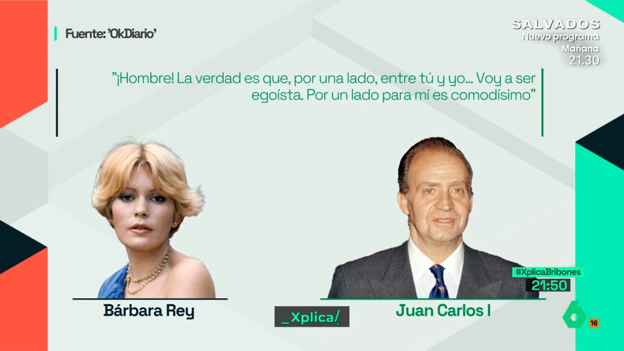 Los colaboradores de laSexta Xplica hablan de los nuevos audios del rey Juan Carlos I hablando con Bárbara Rey y en los que el emérito hace referencia a su relación con la reina Sofía, de quien dice que es "comodísimo" estar con ella porque, además de discreta, "aguanta y no se va con otro". "Es tremendo el desprecio con el que habla de su esposa", destaca José Yélamo.