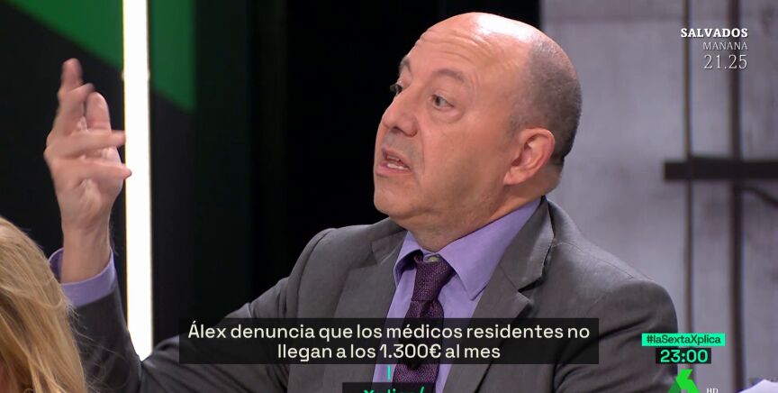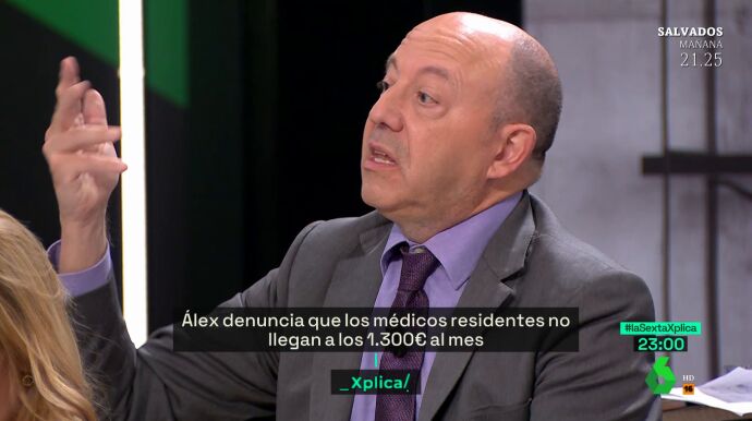 Álex, médico residente, denuncia en laSexta Xplica los precarios sueldos que recibe el personal sanitario en nuestro país, que no llega a los 1.300 euros al mes. El economista Gonzalo Bernardos se echa las manos a la cabeza.