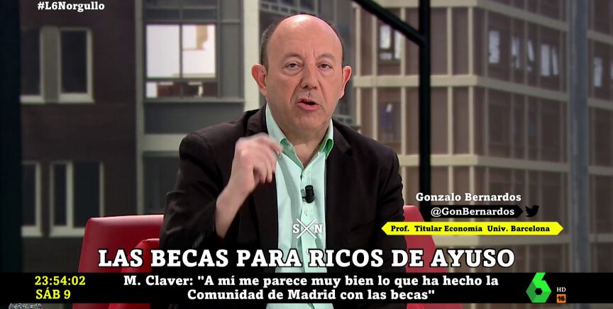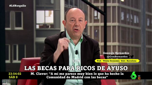 Isabel Díaz Ayuso decía hace unos días que ganar 144.000 euros al año es clase media y que llegan con dificultades, una afirmación que para Gonzalo Bernardos dista mucho de la realidad: "Sabe perfectamente que en España ni un 5% puede llegar a ganar esto".
