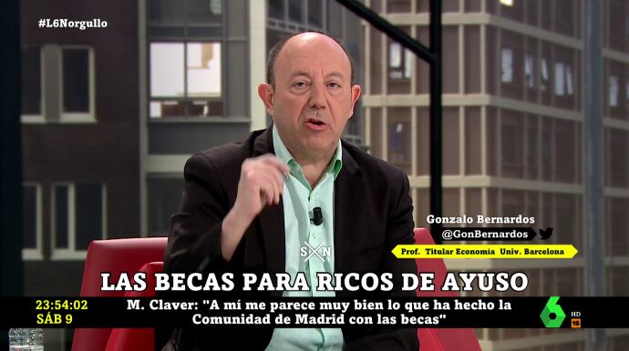 El economista señala que las becas de la Comunidad de Madrid a este tipo de rentas "no está beneficiando a la concertada, sino a los colegios privados de élite". "Las becas se han de dar siempre a quien no tiene dinero. Si uno saca muy buenas notas, pero es rico, que se lo pague", defiende el profesor en el vídeo sobre estas líneas donde también señala que "en este país no funciona el ascensor social y para que funcione se necesitan becas a personas humildes, solo humildes".