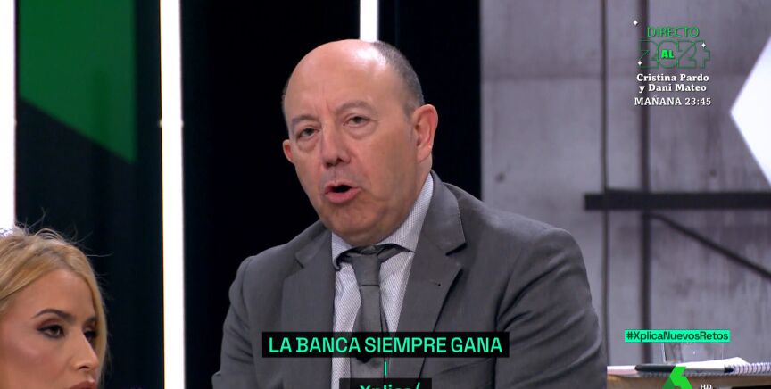 El profesor de Economía Gonzalo Bernardos analizó en laSexta Xplicael impuesto a la banca: "Es muy sencillo, lo que nosotros observamos es que a partir del segundo semestre de 2022 la banca dispara beneficios, el Gobierno se da cuenta y pone en el mismo cóctel a las energéticas y a la banca".