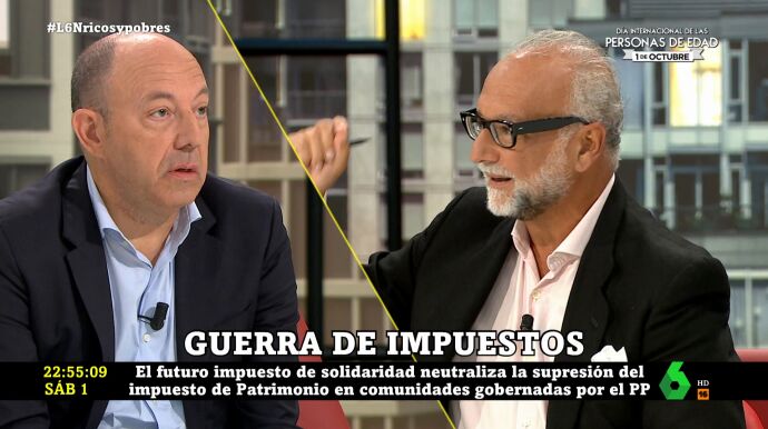 Según O'Kean, no se deberían bajar los impuestos cuando hay inflación, "porque eso significa dar fuerzas para que la inflación siga". El catedrático se muestra, además, a favor del impuesto de patrimonio, pero matiza, "tiene que funcionar". El problema, afirma, es que "la gente realmente rica lo evade" montando sociedades patrimoniales o saliendo de España. Una afirmación que Bernardos considera que no es cierta. "Si lo evadieran, no se quejarían. Eso es un mantra de la derecha", afirma el economista.