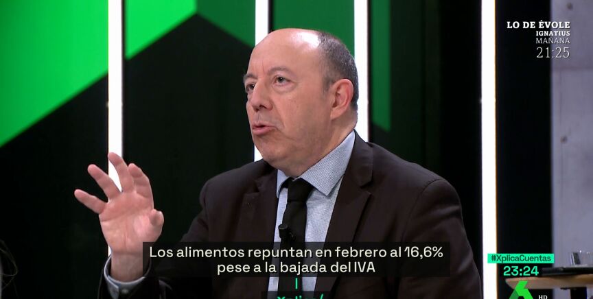 En un programa de laSexta Xplica de hace meses, Gonzalo Bernardos reflexionó sobre el aumento de los precios en los supermercados. "Aquí en España ha ocurrido el milagro de los panes y los peces, pero en sentido inverso", explicó el economista, que detalló que "los precios han subido el 16,7%, pero ninguna cadena de supermercados lo ha subido". "Yo lo explico, porque no es verdad, no nos están contando la verdad a los consumidores", insistió Bernardos, que afirmó que no se creía que los supermercados hubiera bajado sus beneficios.
