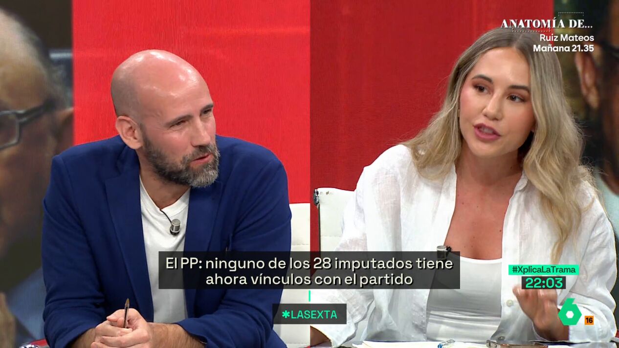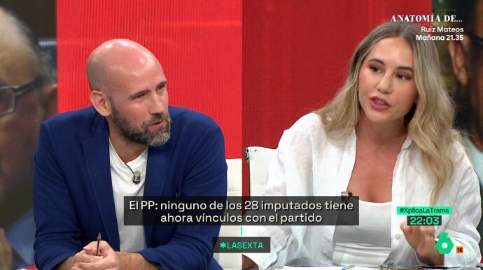 Noelia Núñez, vicesecretaria general en el Comité Ejecutivo Nacional del Partido Popular, salió en defensa de Feijóo en laSexta Xplica. "Pretender equiparar a Feijóo con Sánchez, con lo que tiene encima de la mesa....", expresó, a lo que añadió que "en 30 años de servicio público, Alberto Núñez Feijóo no ha tenido a ni un solo colaborador ni a un solo miembro de su equipo imputado, mientras el presidente del Gobierno ha tenido a sus dos manos derechas imputadas".