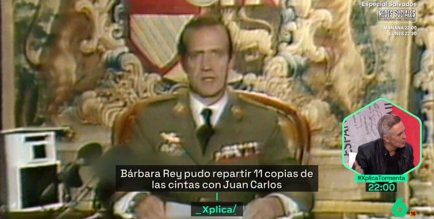 Luego prosigue con sus palabras: "Qué es eso que dijo un compañero aquí que ella dice que le llama el día antes del 23-F para que no salga a la calle. En 'Más Vale Tarde' lo dijo un compañero, que se lo comenta una persona importantísima de Casa Real".