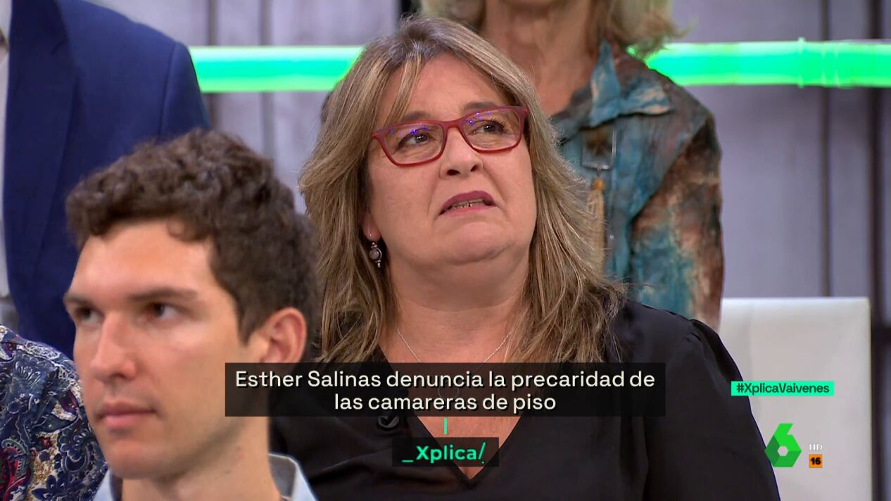 Esther Salinas, camarera de piso, ha participado en el programa laSexta Xplica donde ha expuesto la preocupación de su colectivo profesional por la salud. "Las condiciones son dignas si se cumpliera la normativa, el convenio, la prevención de riesgos laborales...", ha aseverado.