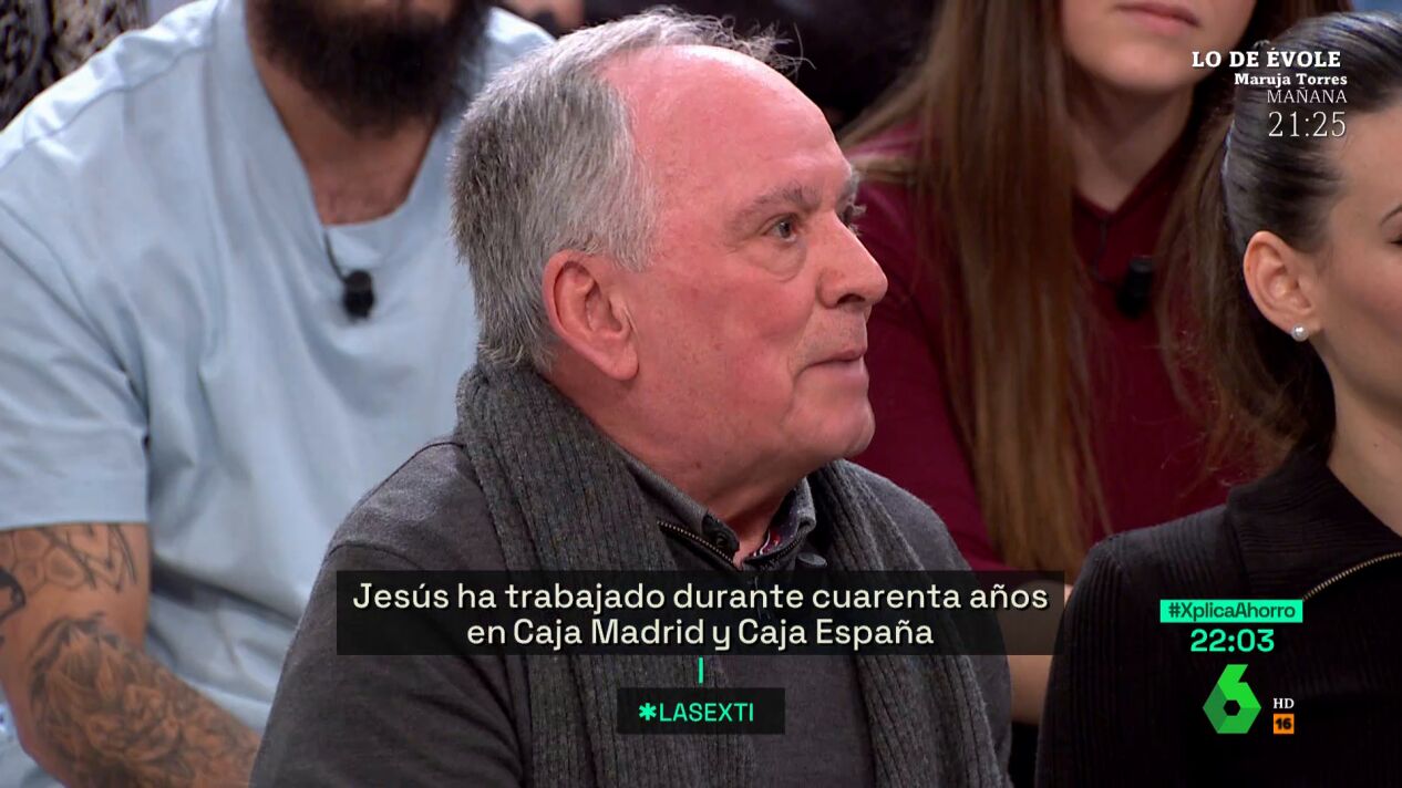 Jesús Robledo Barrio, presidente de Ajubank (Asociación de Empleados Jubilados de Caja Madrid), ha expresado en laSexta Xplica que no quería "defender a los bancos pero, a nivel personal, la gente en este momento es consumista y cortoplacista, lo quieren hacer todo en el momento, por lo que es difícil ahorrar".