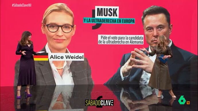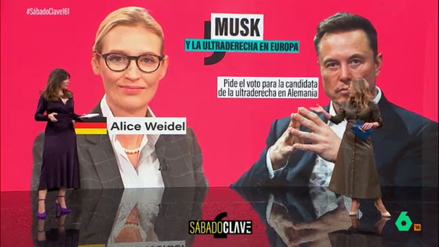 "Alice Weidel es una persona muy razonable. Solo AfD puede salvar a Alemania. Fin de la historia", dijo Musk tal y como han recordado en Sábado Clave, en un análisis de los vínculos del dueño de 'X' con la ultraderecha realizado por Laura Herranz.