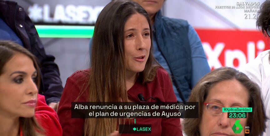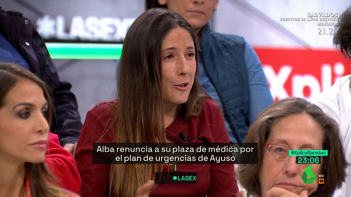 La sanidad madrileña ha dicho 'basta' al nuevo plan de urgencias del Gobierno de Isabel Díaz Ayuso. Una de las muchas personas que ha renunciado a su puesto es Alba Alonso, médico rural de urgencias, que cuenta en laSexta Xplica cómo fue su experiencia en un centro donde tenía que atender a "160 pacientes en 24 horas".