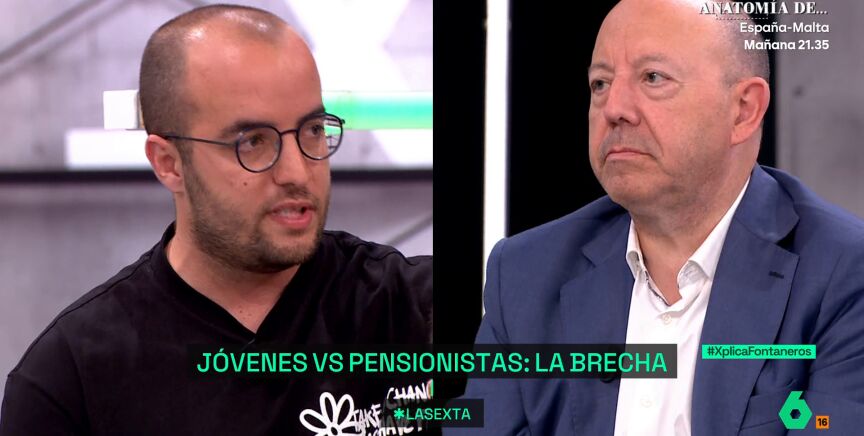 El joven ha señalado al economista por proponer estirar la jubilación hasta los 70 años para solucionar el aumento del gasto en pensiones.