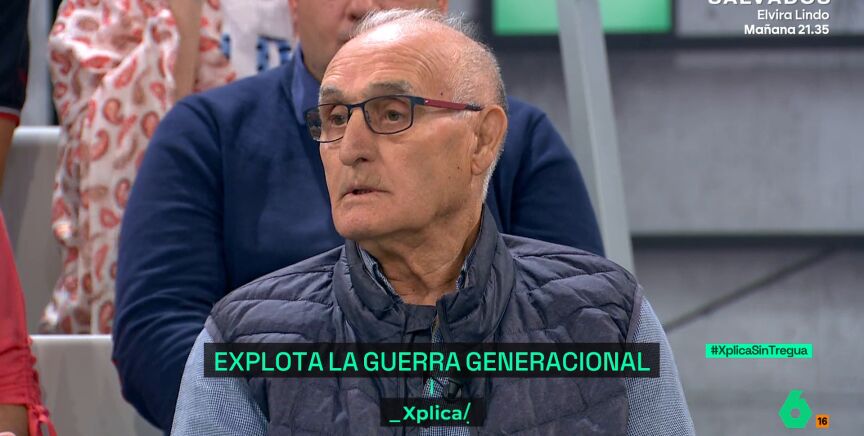 laSexta Xplica escucha la opinión de Juan Leo, jubilado, en este debate dedicado a la supuesta brecha generacional que existe en la sociedad. "Quieren mucho sueldo y trabajar regular", llega a afimar de los jóvenes.