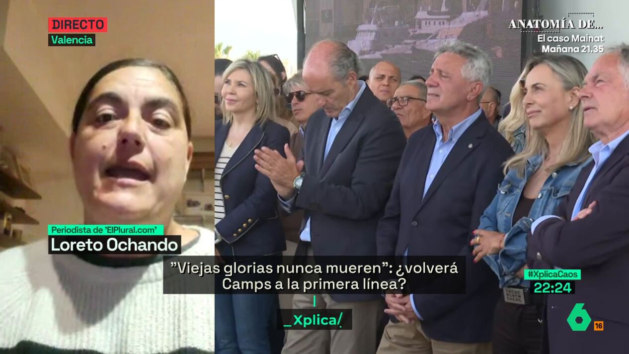 "¿Cómo has visto a Camps, tan eufórico como aparece en las imágenes?", pregunta José Yélamo a la periodista Loreto Ochando. "Sí, él se ha dado un baño de sus multitudes, porque aquello eran todo viejas glorias", ha destacado la colaboradora de laSexta Xplica, quien afirma que "no había nadie" entre los asistentes que "esté actualmente en política, salvo un concejal de un pueblo".