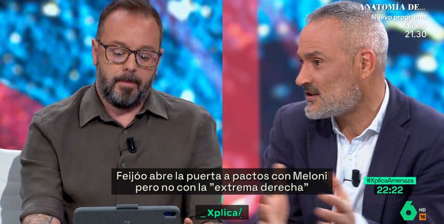 El periodista Antonio Maestre ha respondido totalmente indignado este sábado en laSexta Xplica ante las palabras del jurista Santiago Martínez-Vares cuando este ha asegurado que la primera ministra italiana, Giorgia Meloni, se ha suavizado respecto a los discursos extremos que ofrecía antes de llegar a dirigir Italia.