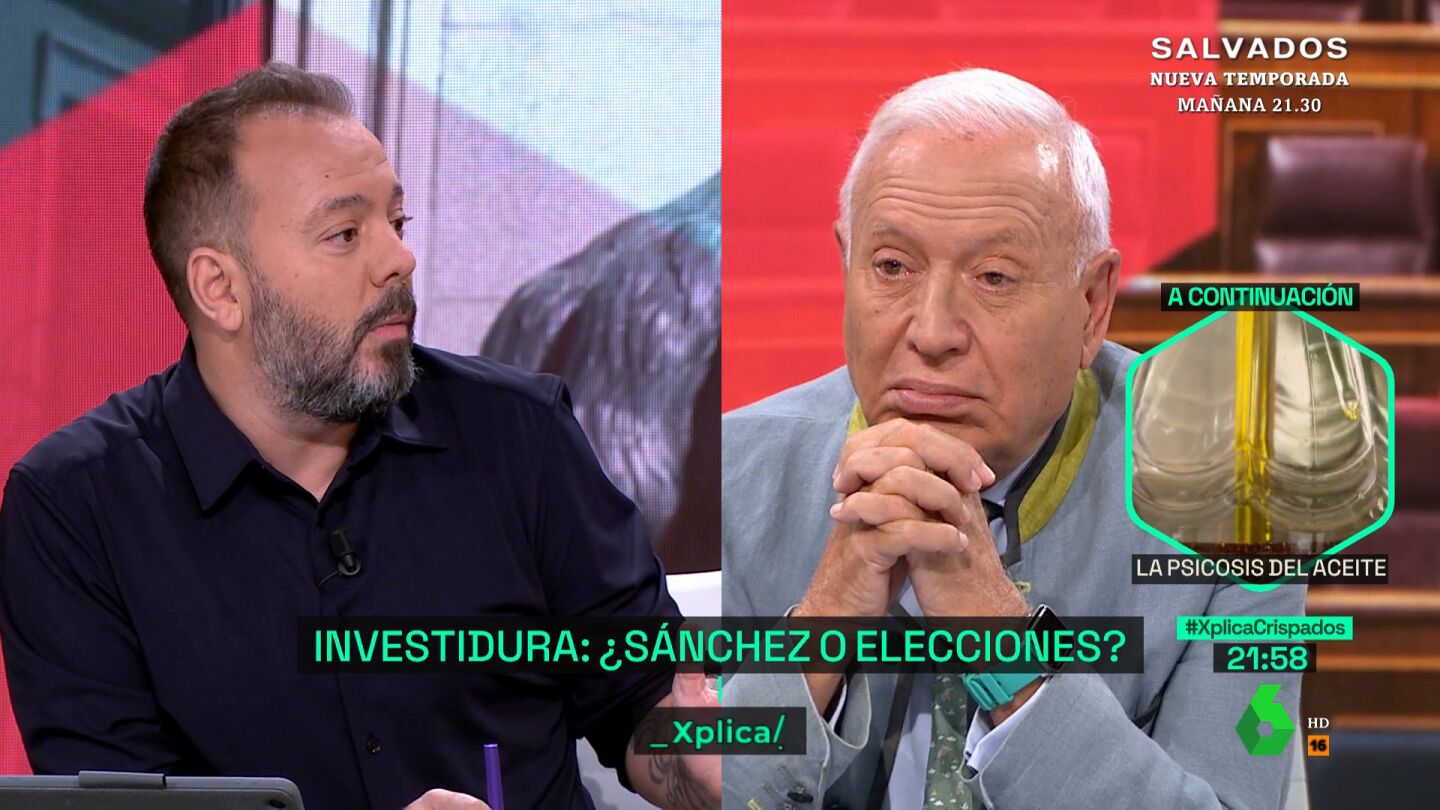 José Manuel García-Margallo y Antonio Maestre han protagonizado un tenso debate en laSexta Xplica. "Dígame de qué puedo hablar y yo agoto ese tema", ha expresado el político del PP tras criticar el periodista sus respuestas.