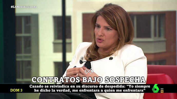 La periodista ha pedido que "hay que investigar e ir hasta el final" con el contrato del hermano de Ayuso, y ha lamentado que la marcha de Casado es "una pérdida importante" para el PP.