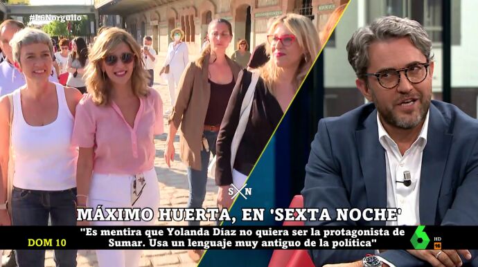 Yolanda Díaz y la presentación de su proyecto, Sumar, fue uno de los temas sobre los que Máximo Huerta converso con José Yélamo en laSexta Noche. Sobre la vicepresidenta del Gobierno, el exministro de Cultura y Deporte afirmó que "es mentira que no quiera ser la protagonista": "Eso de 'vosotros sois los principales' es mentira, es lenguaje muy antiguo de la política".