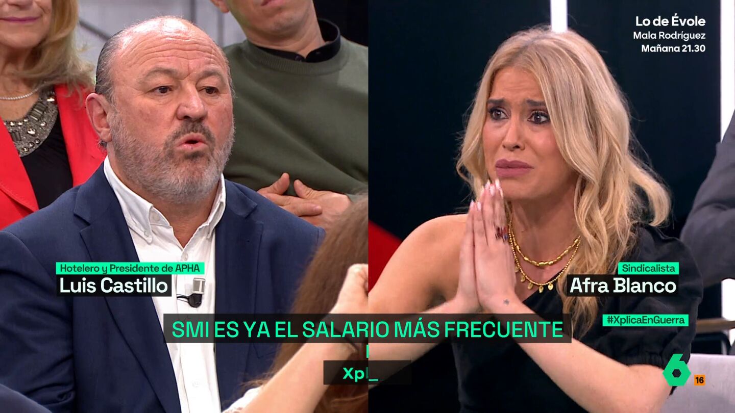 Afra Blanco salió en defensa del trabajador en laSexta Xplica y recordó a un empresario que los convenios son "un acuerdo entre las partes", pero recordó que están las "cláusulas de revisión salarial, que garantizan una no pérdida de poder adquisitivo con respecto a la inflación".