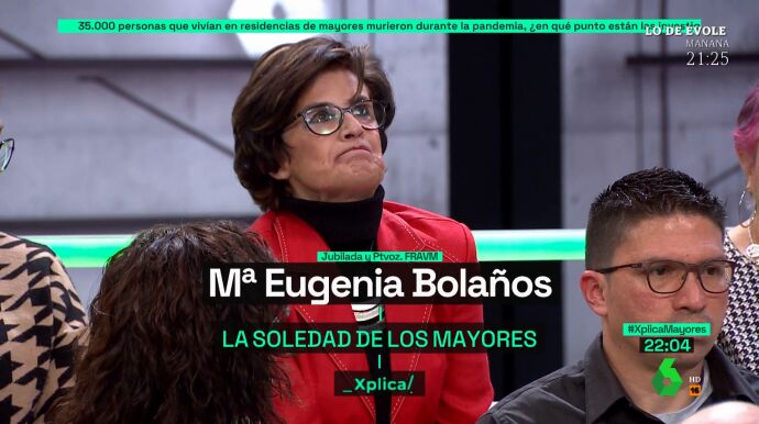 María Eugenia Bolaños es jubilada y portavoz de la Federación de Asociaciones Vecinales de Madrid. Asegura en laSexta Xplica que la soledad es un problema cada vez más recurrente. "Nosotros recogemos el sentimiento, el pesar, y empezamos a conocer y a poner nombre a la soledad", ha explicado.