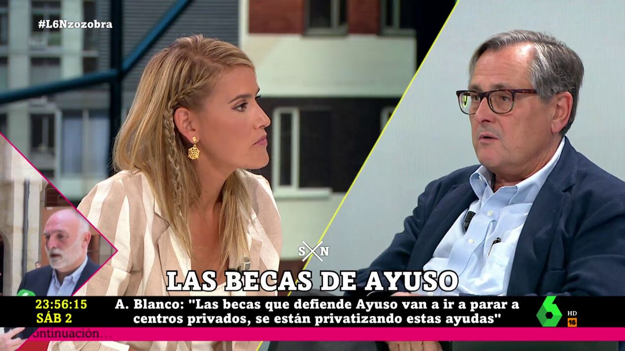 Intenso debate en laSexta Noche entre la sindicalista Afra Blanco y el periodista Paco Marhuenda a cuenta de las becas en la Comunidad de Madrid a las familias con alto nivel adquisitivo, como recoge el vídeo.