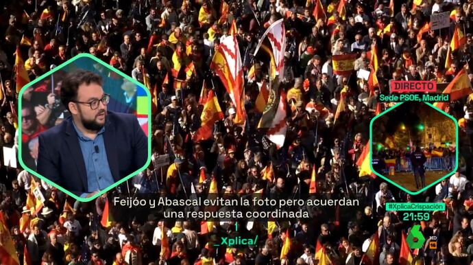 "Me preocupa el lenguaje golpista que usa la ultraderecha en este país. También que personas en teoría templadas, como Feijóo o Margallo, justifiquen, en cierta forma, lo que está pasando. Digo justificar porque Margallo acaba de decir que se está produciendo un golpe definitivo a la propia existencia de la nación española", mantiene el periodista durante su participación en el programa laSexta Xplica.
