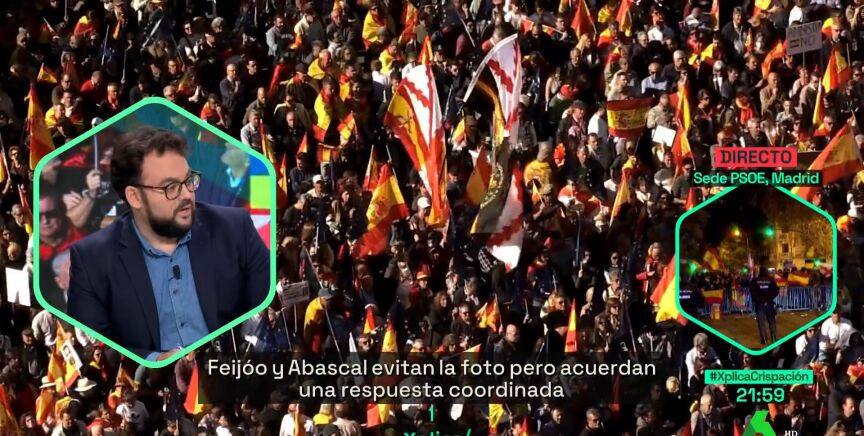 "Me parece peligrosa la deriva en la que hemos entrado. Nada tienen que ver estas manifestaciones con la amnistía. Se habla muy poco de ésta en esas manifestaciones, e incluso en el discurso político de los últimos días", asegura el periodista.