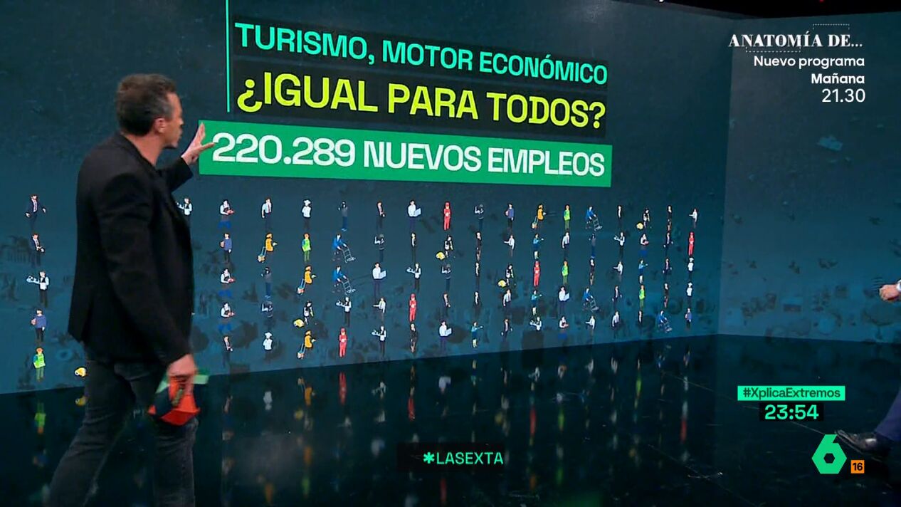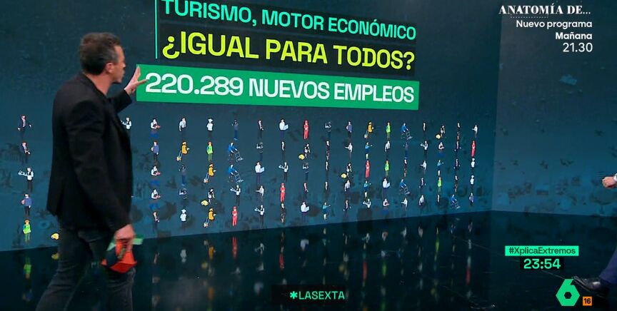 En el último mes se generaron 220.289 nuevos empleos, pero si lo comparamos con la hostelería se trata de un tercio. Además, si sumamos tanto el transporte como el resto de las cuestiones, es decir, todo el que se pueda beneficiar del turismo, hablamos del 102.000 de nuevos empleos. Pero no todo el motor económicos es igual para todos. Mientras el sector turístico sube los precios, los salarios de los trabajadores siguen siendo precarios.