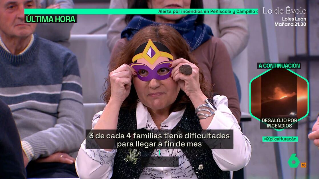 Teresa Castillo, que está en búsqueda de empleo mientras tiene "un trabajo precario de media jornada" y continúa formándose, aprovecha Carnaval para hablar "de los disfraces de la precariedad" en el plató de laSexta Xplica. Y es que la mujer lamenta que "la precariedad se disfraza de muchas cosas".