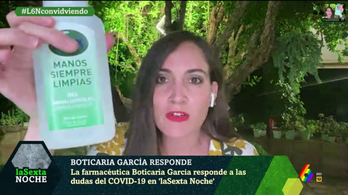 La farmaceútica Boticaria García ha respondido dudas del público de laSexta Noche sobre el coronavirus. En lo referente a los geles hidroalcohólicos, Sanidad ha informado de que hay un riesgo porque como tiene un porcentaje de etanol hace que sean altamente inflamable. Por tanto, recomienda no fumar inmediatamente después de haber utilizado estos geles.