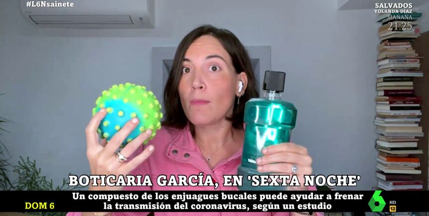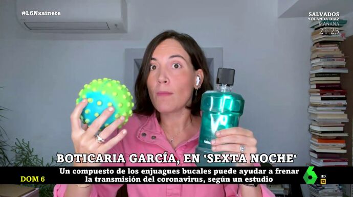 Aunque el enjuague bucal es una herramienta muy importante en el cuidado de nuestros dientes, también podría ser un aliado frente al COVID. Así lo ha expuesto un grupo de investigadores de Valencia, y sobre esta cuestión ha hablado Boticaria García en laSexta Noche. "Estos y otros investigadores plantean que un colutorio, uno que tuviera concretamente cloruro de cetilpiridinio, podría actuar en los virus que tenemos en la boca, y sabemos que ómicron se replica bastante en la mucosa bucal", ha señalado Boticaria, que ha precisado: "Tenemos que mirar en la etiqueta que el enjuague que tenga cloruro de cetilpiridinio u otros compuestos que sean antisépticos".