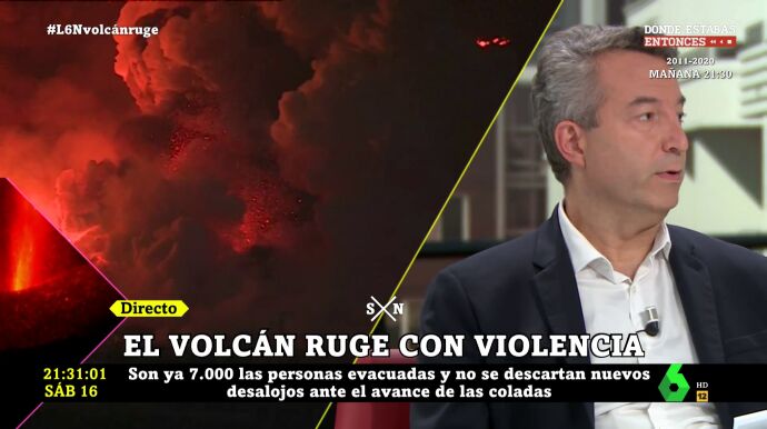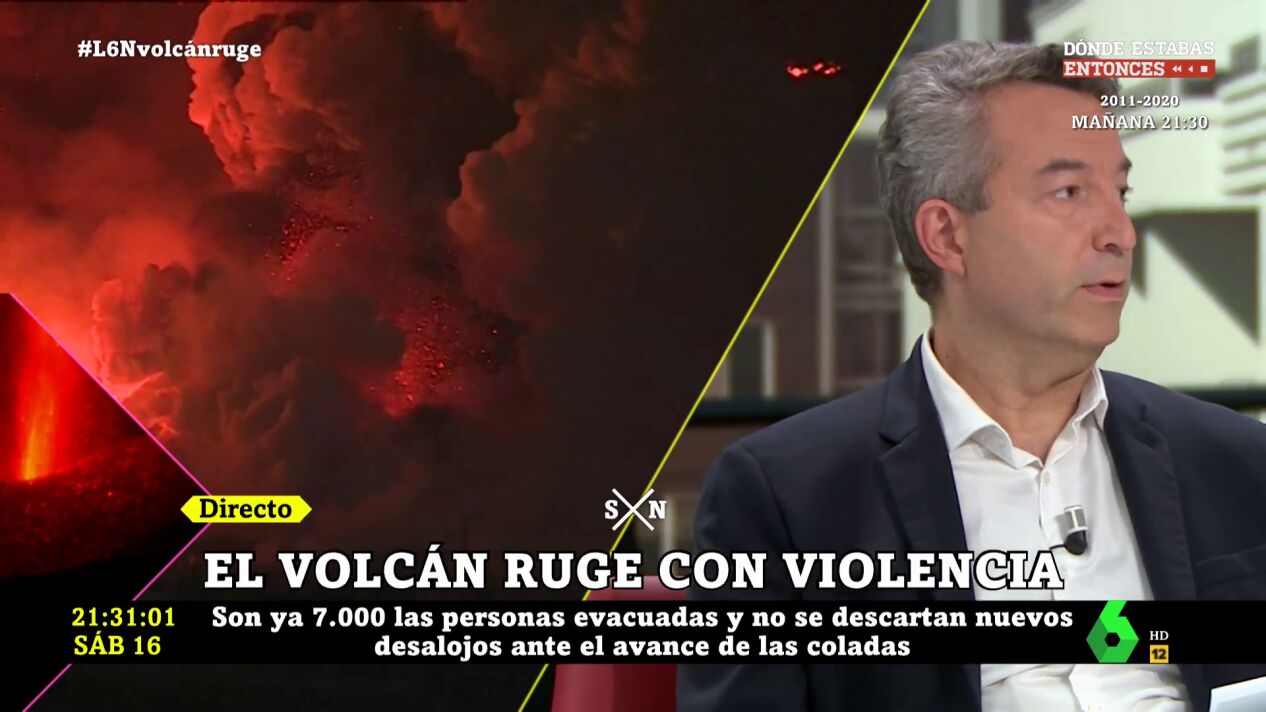César Carballo ha señalado en laSexta Noche que pese a que "las autoridades dicen que el aire es seguro, todo depende de la concentración y del tiempo". "Ya llevamos mucho más tiempo del deseable", ha expresado, tras lo que ha recordado un evento en el que se vieron consecuencias para la población a posteriori: "En el 11S, con el paso de tiempo ha habido más víctimas de los efectos de la inhalación del polvo, de la roca, del cristal, que del propio 11S".