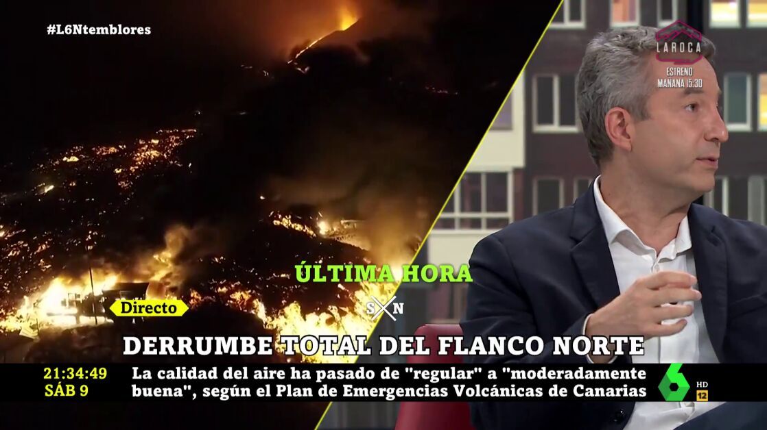 Después de queel flanco norte del volcán de La Palma haya colapsado, laSexta Noche ha seguido muy de cerca la última hora sobre la situación de la isla y ha contado con el análisis de expertos como César Carballo.