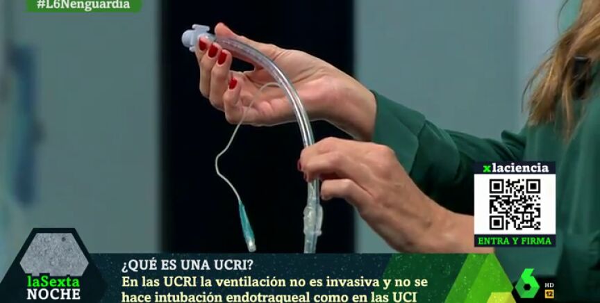 Así, la doctora ha explicado cómo es el proceso de la intubación: "Se mete el tubo por la boca en la UCI, llega hasta el sistema sanitario y se conecta al ventilador". En este sentido, la doctora ha explicado que "una intubación es un proceso agresivo, por lo que puede producir infecciones". "Además, el paciente tiene que estar sedado y no moverse, lo que trae también muchas complicaciones", ha señalado, algo que, según ha afirmado, "no ocurre con la UCRI".
