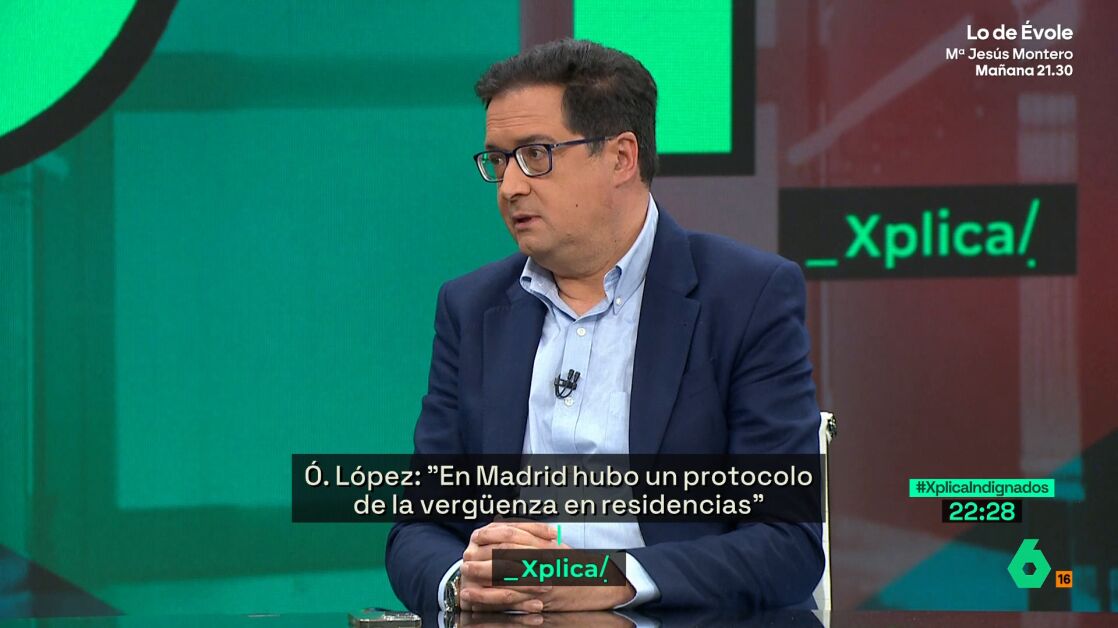 Óscar López, ministro para la Transformación Digital y de la Función Pública de España y líder del PSOE de Madrid, reflexiona en laSexta Xplica sobre la gestión de las residencias de ancianos que hizo la Comunidad de Madrid durante la pandemia del Covid y denuncia el "trato distinto" que se dio a los pacientes que tenían seguros privados.