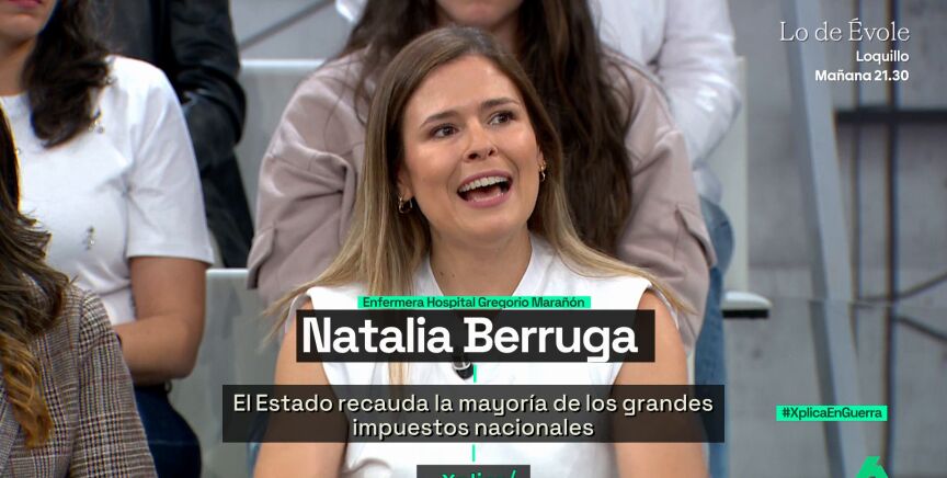 Natalia Berruga,enfermera en la Comunidad de Madrid, ha alzado la voz en laSextaXplica ante el creciente discurso que circula especialmente entre jóvenes en redes sociales, donde se califica a España como un "infierno fiscal" y se tilda a los impuestos de "robo".