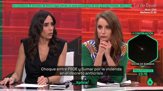 La periodista afirmó en laSexta Xplica que "no es cierto que las subidas de impuestos sean de izquierdas y las bajadas de derechas", y criticó que "no hubo ni un escudo social en la guerra de Irak, cuando el petróleo se disparó".