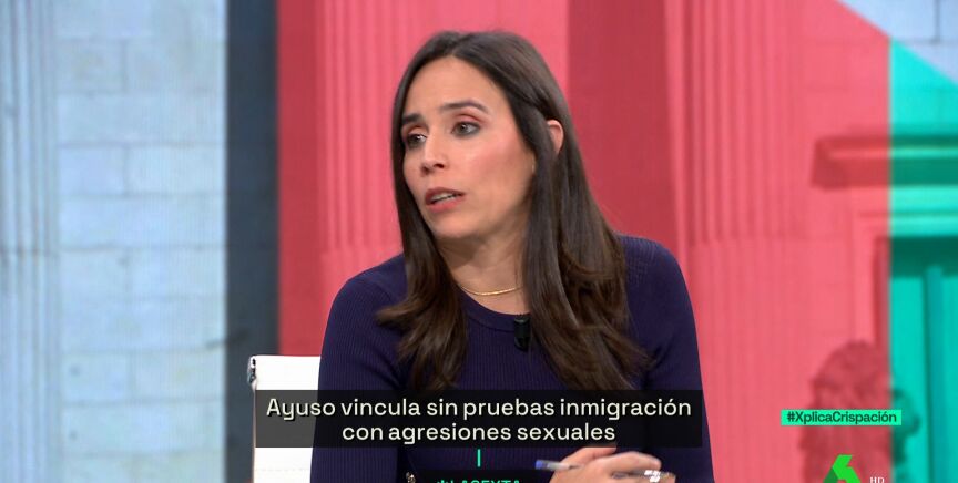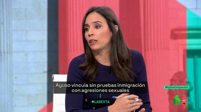 "Los datos desmienten siempre al PP, a Vox y a quien quiera vincular la inmigración con la delincuencia", ha agregado. En este sentido, la periodista ha expuesto que según los datos del Instituto Nacional de Estadística, "el 77% de los delitos en España los cometen nacionales". "Que el PP resuelva de una vez un discurso que tiene que ser menos hacia Vox", ha reclamado, como puede observarse en el vídeo superior.