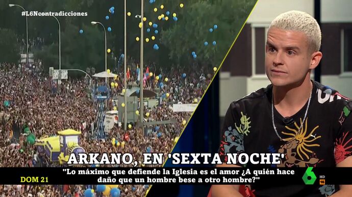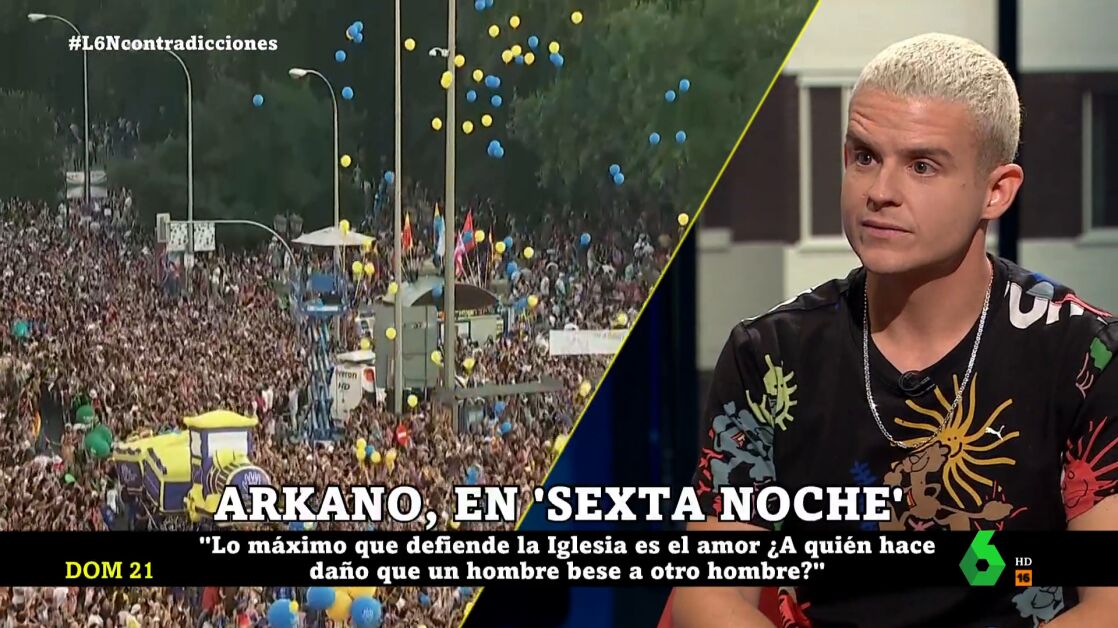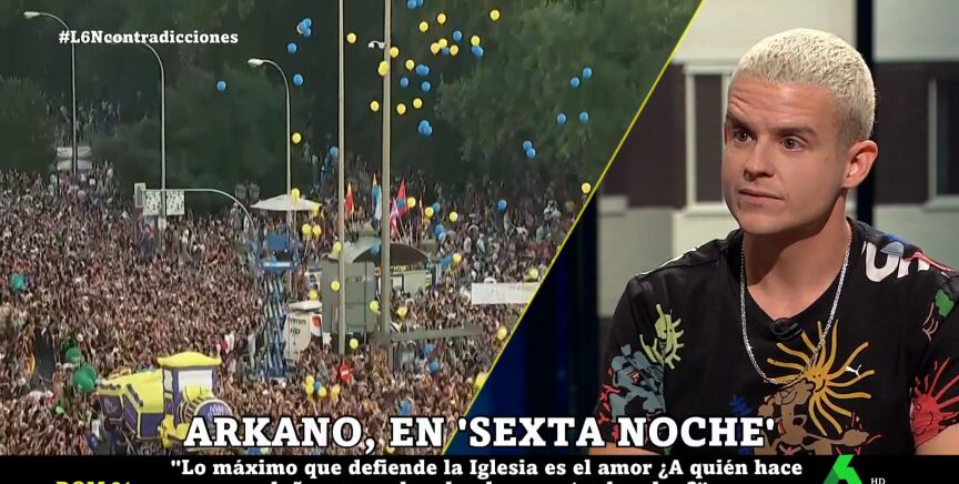 Arkano expresó en laSexta Noche su opinión sobre el hecho de que no se colgara la bandera LGTBI durante la celebración del Orgullo en Madrid. "Habría que preguntarles a qué tienen miedo, qué es lo tan malo que puede pasar por colgar una bandera, qué es tan terrible de defender el amor libre, y yo creo que con esa pregunta se resuelve todo. A ver qué responden", manifestó.