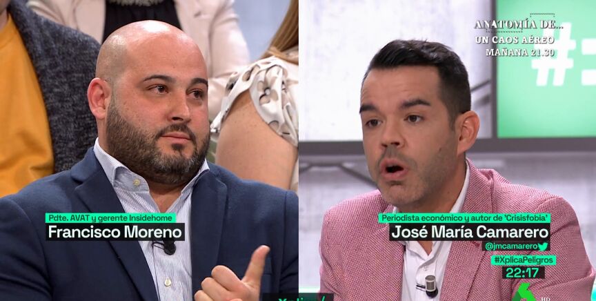 "El problema no es la legislación, sino la inspección", afirma en este vídeo el periodista José María Camarero durante un debate con un empresario de pisos turísticos, al que recuerda la legislación vigente en Madrid y que casi nunca se cumple.