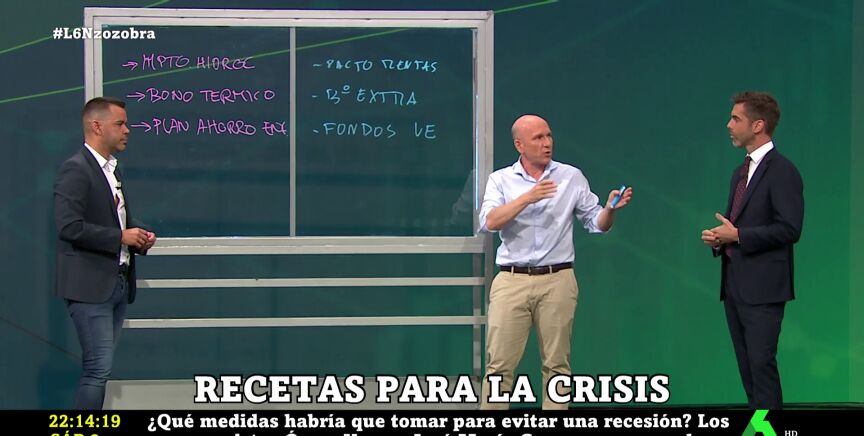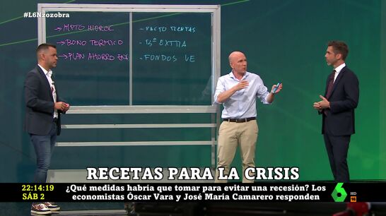 ¿Qué medidas habría que tomar para atajar la crisis? Los economistas Óscar Vara y José María Camarero han señalado en laSexta Noche las tres que tomaría cada uno para evitar una recesión. En el caso de Camarero, ha destacado la "reducción del impuesto de hidrocarburos": "En España se puede rebajar en el diésel casi cinco céntimos por litro y en la gasolina casi 12 céntimos por litro, lo que abarataría un poco el depósito", ha defendido.