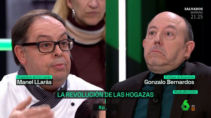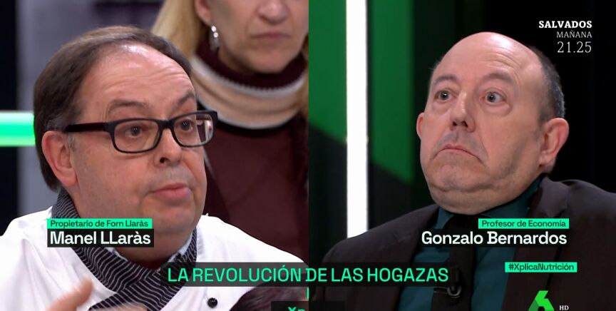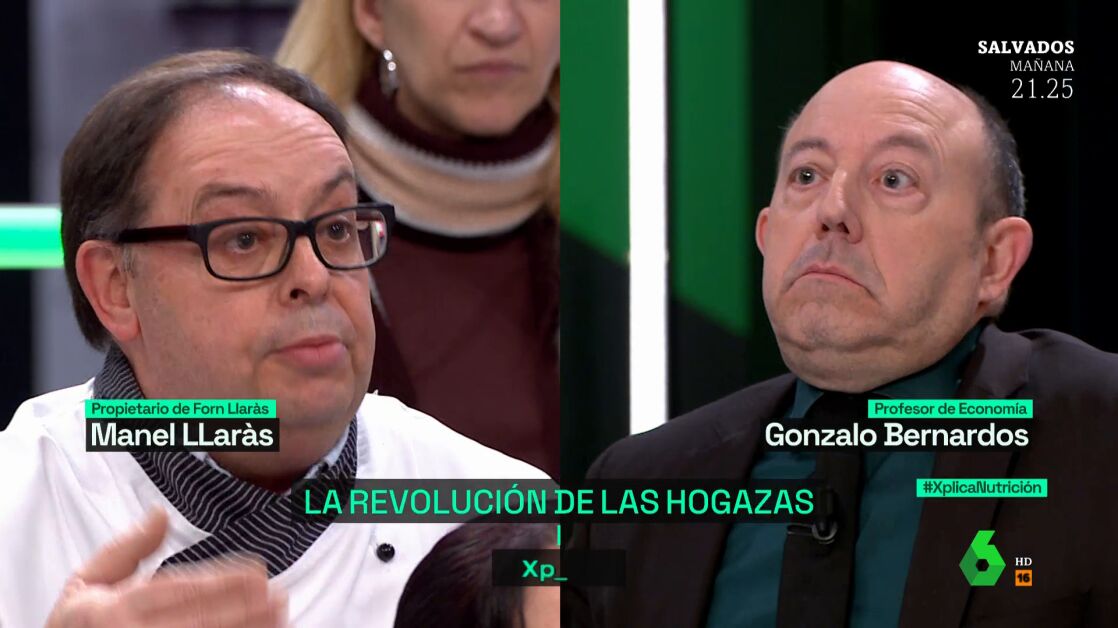 "Tú no tienes claro el mundo del pan, tú lo mezclas todo y hablas de modelo de negocio. Uno no puede saber de todo continuamente. Yo te explico el tema del pan": así ha comenzado Manel Llaràs, propietario de una panadería a reprender las palabras de Gonzalo Bernardos, que ha defendido en laSexta Xplica que los panaderos deben adaptarse al nuevo negocio.