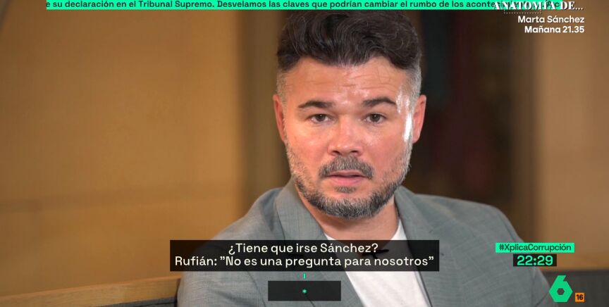 Ahora bien, Rufián no tiene la certeza de que el Ejecutivo vaya a aguantar toda la legislatura, motivo por el que pide "aprovechar" el tiempo que le quede al Gobierno: "Lo que tengo que hacer es aprovechar el tiempo que tenemos. ¿Qué va a quedar? ¿Un mes o un año? Dependemos de las informaciones que surjan. Teóricamente el presidente del Gobierno habla del año 27. Ojalá sea así, pero no lo que no vamos a hacer es seguir diciendo que esto son inventos".