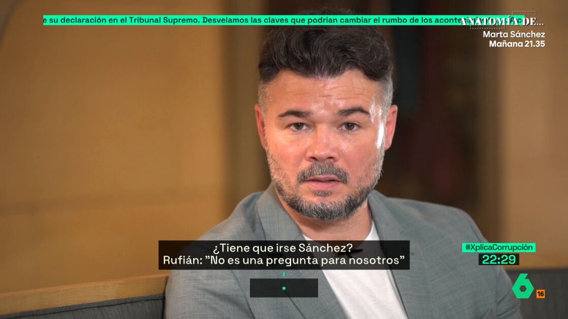 Rufián, sobre cuánto tiempo le queda al Gobierno: "¿Un mes o un año? Dependemos de las informaciones que surjan"
