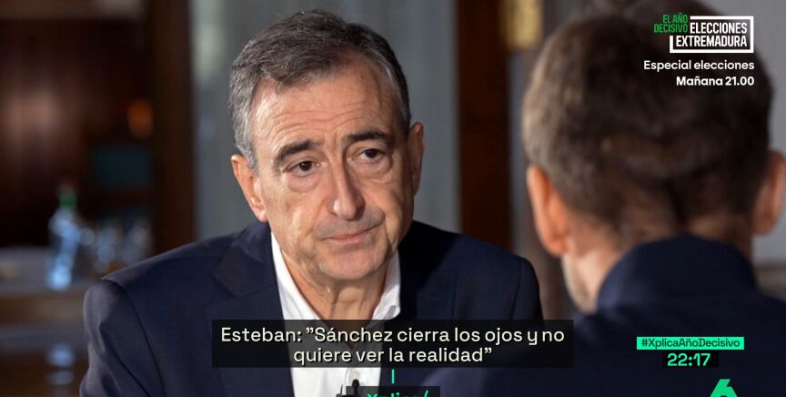 El presentador quiere saber cuáles son las "líneas rojas" de la formación con respecto al presidente, pero Esteban cree que esa pregunta debería ir dirigida precisamente a Pedro Sánchez por su determinación de seguir adelante con la legislatura sin los apoyos suficientes.
