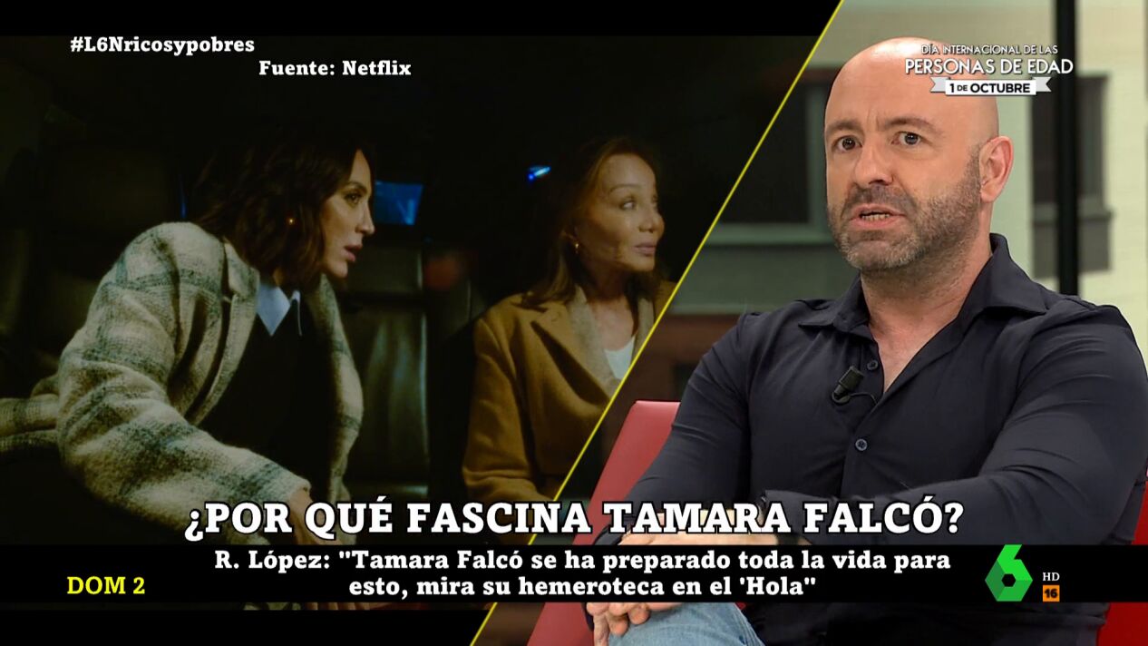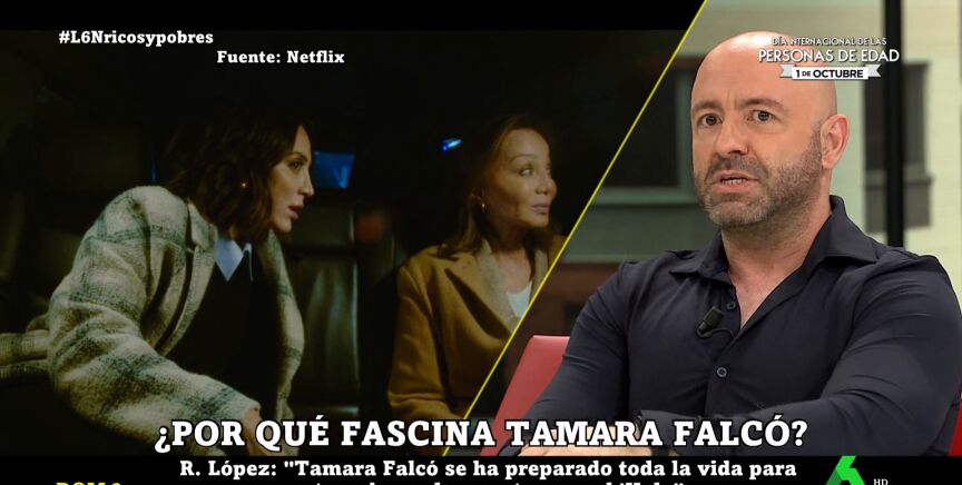 El sociólogo Rafa López y Santiago Martínez-Vares han hablado en laSexta Noche de la "fascinación" que causa a nivel social Tamara Falcó. Martínez-Vares, explica que tiene un gran favor, porque "está por encima de los medios": "Ha nacido en los medios, los conoce, no es un juguete en sus manos".