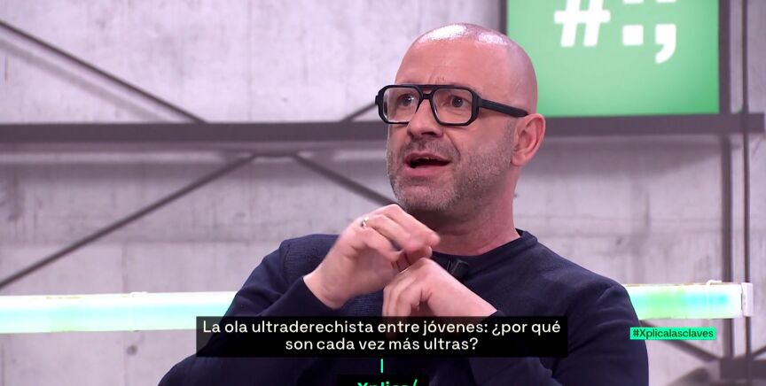 Rafa López, sociólogo, analiza en el plató de laSexta Xplica el aumento de la extrema derecha entre los jóvenes. "Hay mitos que hay que derrumbar", afirma el sociólogo, que explica que "los jóvenes no se han ido a la derecha": "No es que toda la juventud se haya ido a la derecha". "Recordemos que ellas se han ido hacia la izquierda porque a veces hacemos un análisis muy machista en donde solo nos preocupa e importa lo que hacen ellos", afirma el sociólogo, que insiste en la "gran brecha" entre jóvenes varones y mujeres.
