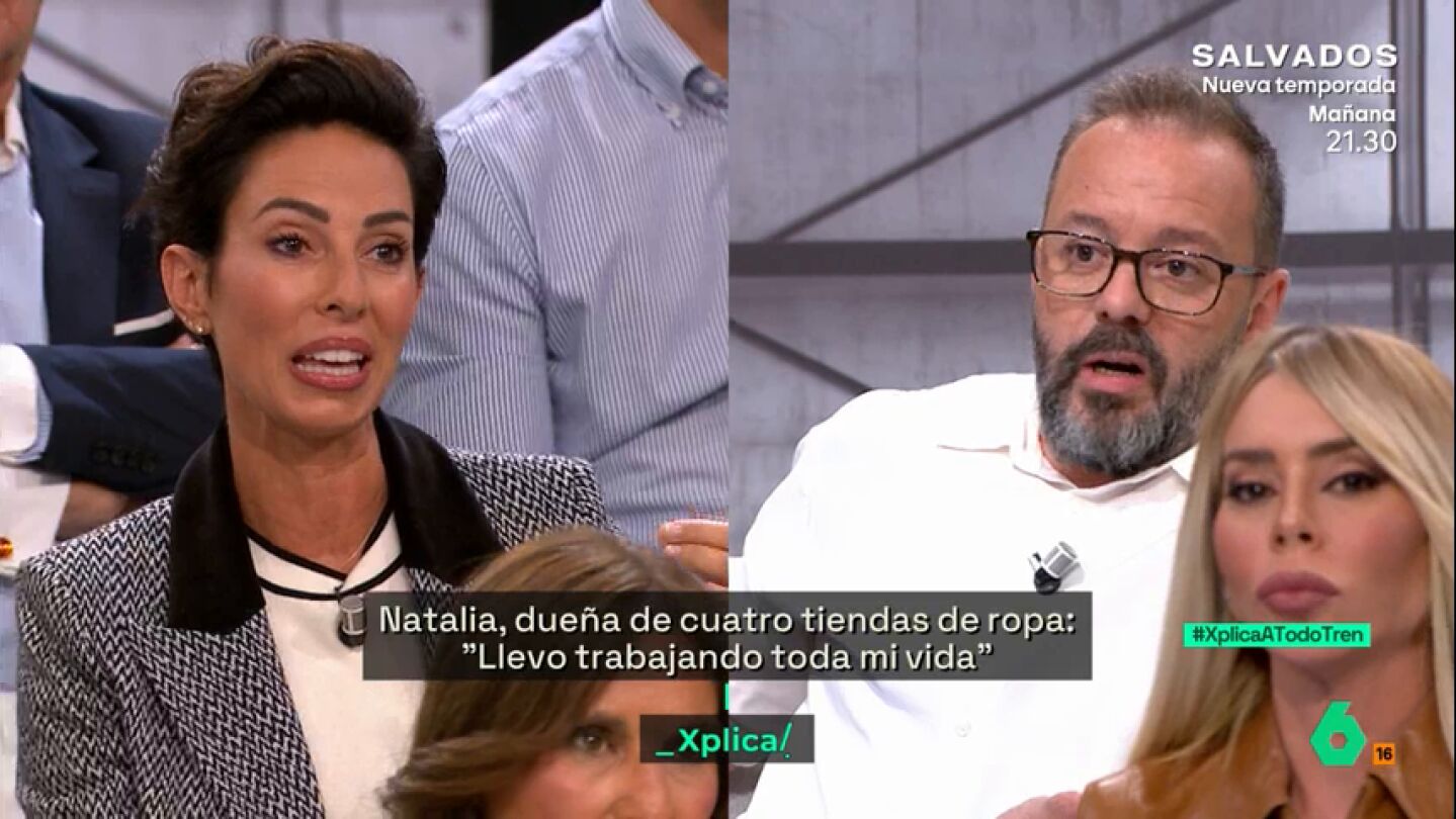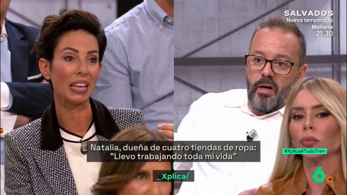Natalia de Blas, empresaria, y el periodista Antonio Maestre protagonizaron un tenso debate en laSexta Xplica a cuenta de las cotizaciones. "Me quedo bastante sorprendida con que parece que en España parece que tenemos miedo a la riqueza, y a mí lo que me da miedo es la pobreza. Aquí nadie habla de no pagar impuestos; el problema es que si los impuestos llegan a quien tienen que llegar y no se expolian, no hablaríamos de estos problemas. Yo no tengo problema en cotizar, con lo que sí tengo problema es con que me roben", expresó la empresaria.