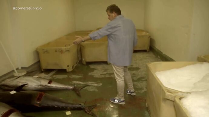 "Huele fuerte, hay restos en el suelo de atún, está lleno de moscas y de mierda", exclama el chef al cruzar la puerta. Sin embargo, el instante más impactante se produce segundos después cuando Chicote entra en la cámara frigorífica. Allí encuentra varios atunes tirados en el suelo directamente.