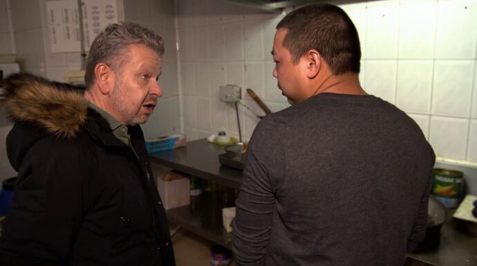 En este vídeo puedes ver cómo el conductor de ¿Te lo vas a comer? pone nervioso al cocinero del negocio con sus preguntas sobre el estado de la cocina. Un barreño con arroz, una lata con aceite, un recipiente con carne descongelándose a temperatura ambiente y motos aparcadas en su interior al lado de lo que parece salsa agridulce ponen 'enfermo' al chef. Sin embargo, es una de las respuestas del encargado de la cocina lo que descoloca por completo a Chicote.